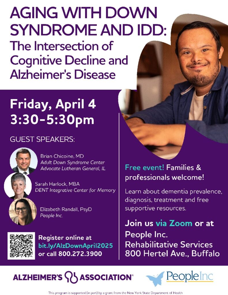 We’re excited to share an incredible opportunity for the DDAWNY community! Our friends at People Inc. have extended an invitation to all members to attend a free seminar on Aging with Down Syndrome and Intellectual & Developmental Disabilities (IDD).
